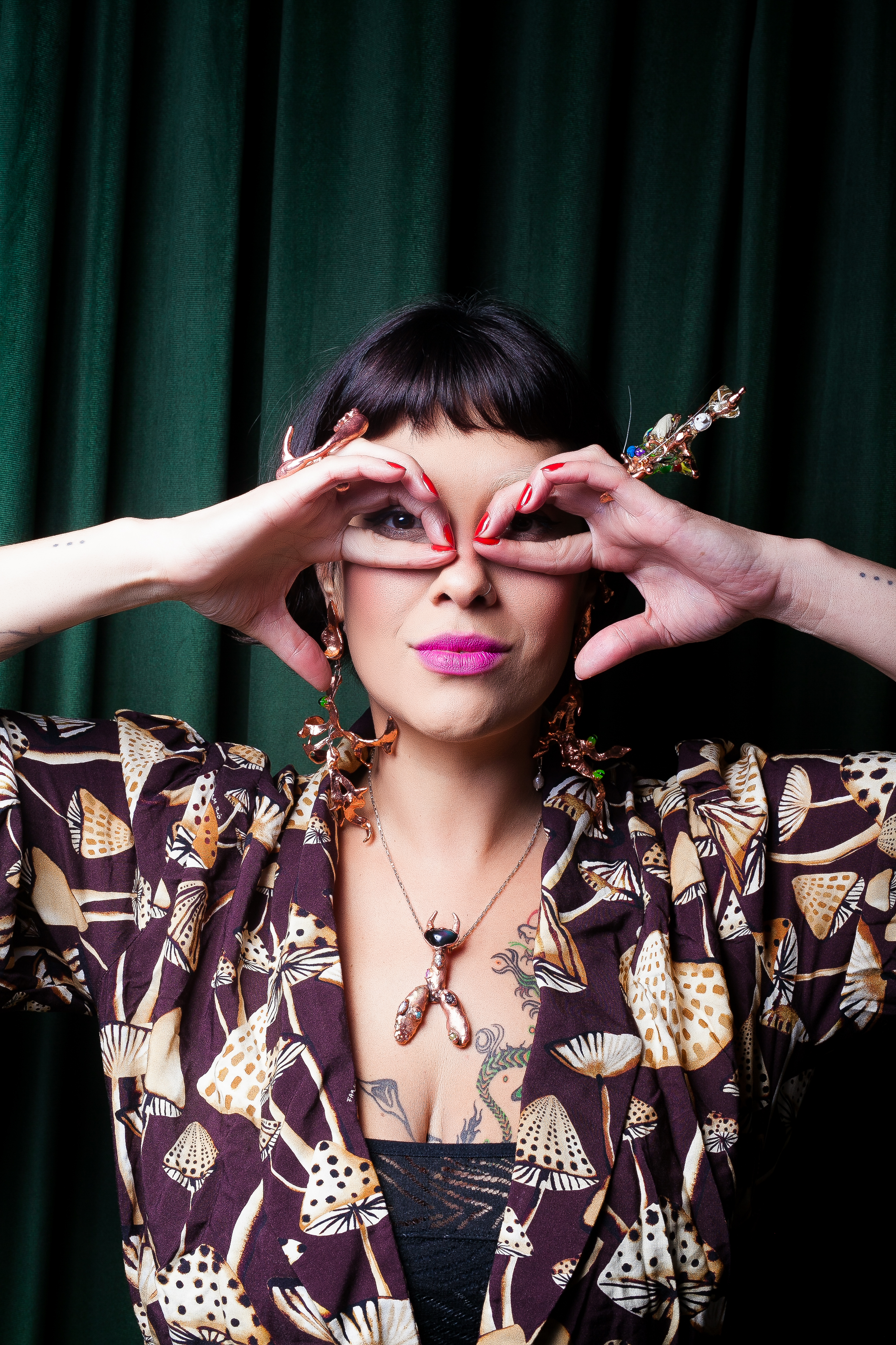 Carolina Gomes é uma artista joalheira queer. Nasceu no Espírito Santo (1986) e atualmente reside em Belo Horizonte. Formou-se em Design Gráfico pela UEMG. Após 12 anos atuando como designer, iniciou seus estudos em joalheria em 2016. Aprendeu técnicas de ourivesaria na Escola Mineira de Joalheria, frequentou cursos do Núcleo Joalheria, Algures e outros.